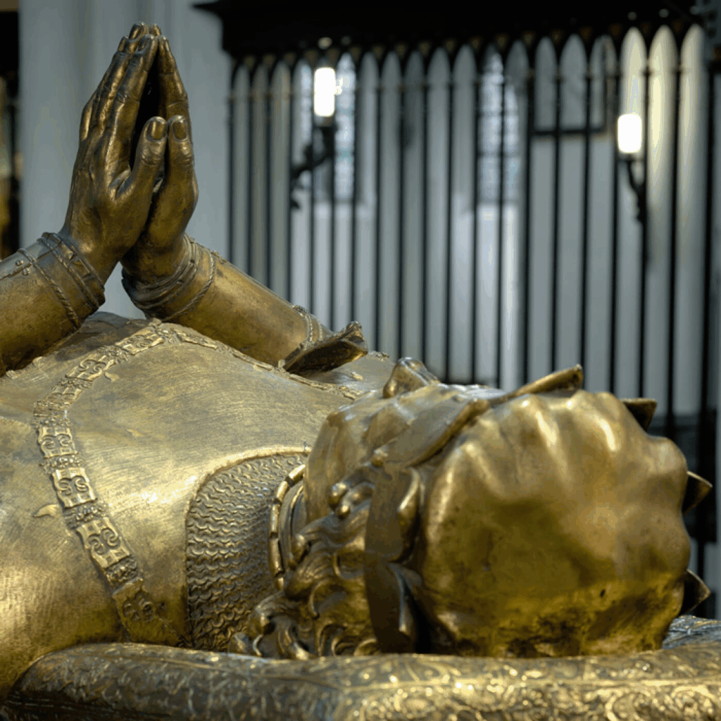 V kostele Panny Marie (Onze-Lieve-Vrouwekerk) v Bruggách si můžete prohlédnout hrobku Karla Smělého, která je vyrobena z mramoru a zlaceného bronzu. Je o půl století mladší než hrobka jeho dcery Marie Burgundské, která se nachází vedle ní. Hrobka Karla Smělého je inspirována hrobkou jeho dcery a je částečně gotická, ale zahrnuje i renesanční prvky. Vévoda je zobrazen ležící s náhrdelníkem na hlavě. Vedle hrobky vidíme chórové lavice s rytířským erbem nad nimi, které slouží jako památka na zasedání kapituly v roce 1468. Erb Karla Smělého je první v řadě.